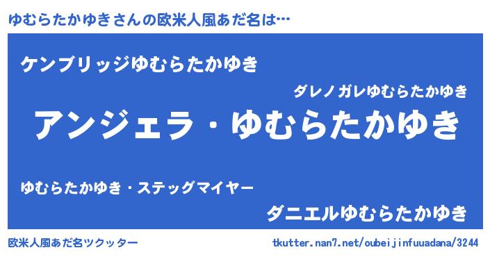 | 男性向けラノベタイトル風あだ名 | 『ゆむらたかゆきに滅ぼされるだけの簡単なお仕事です』 |