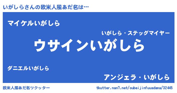 | 男性向けラノベタイトル風あだ名 | 『いがしらの嫁は女の子じゃないと思った?』 |