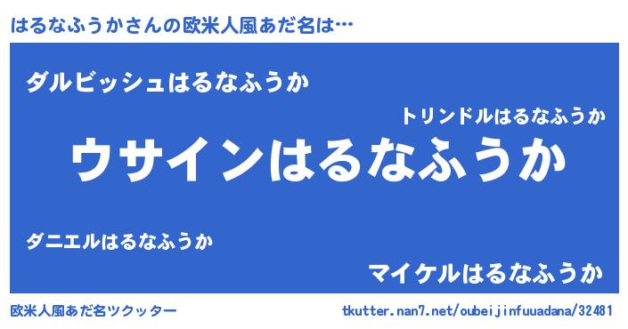 | 男性向けラノベタイトル風あだ名 | 『はるなふうかの嫁は女の子じゃないと思った?』 |