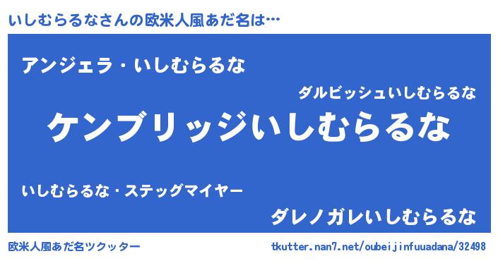 | 意味不明あだ名 | 『自称いしむらるな』 |