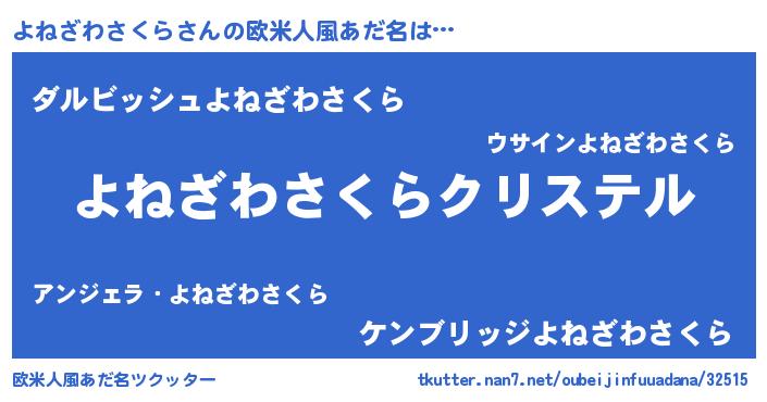 | ファンタジー風あだ名 | 『エターナルヨネザワサクラー』 |