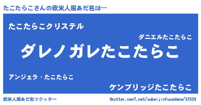 | 男性向けラノベタイトル風あだ名 | 『魔弾の王とたこたらこ』 |