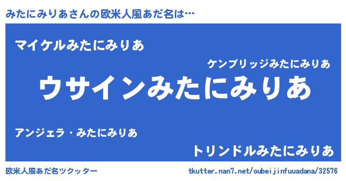 | 女子向けラノベタイトル風あだ名 | 『みたにみりあは平凡を望む』 |