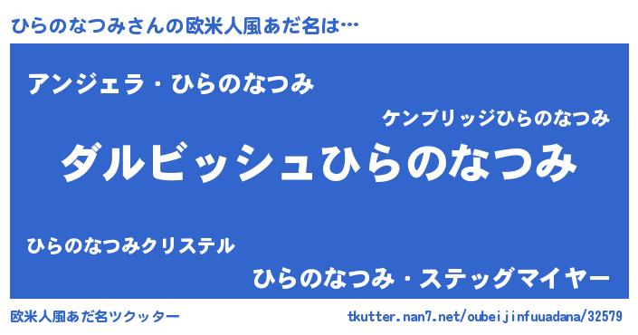 | 女子向けラノベタイトル風あだ名 | 『ひらのなつみの契約王妃』 |