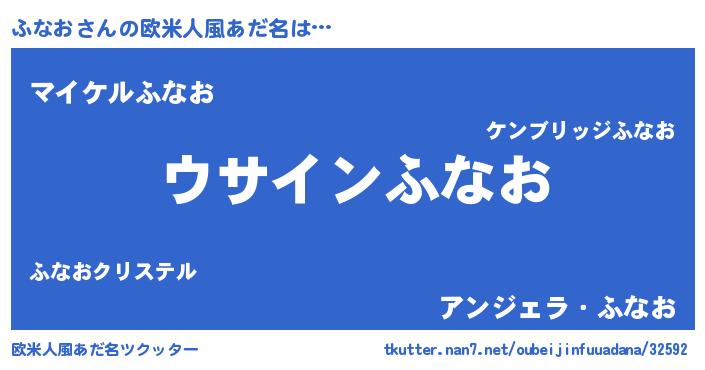 | 男性向けラノベタイトル風あだ名 | 『ふなおの嫁は女の子じゃないと思った?』 |