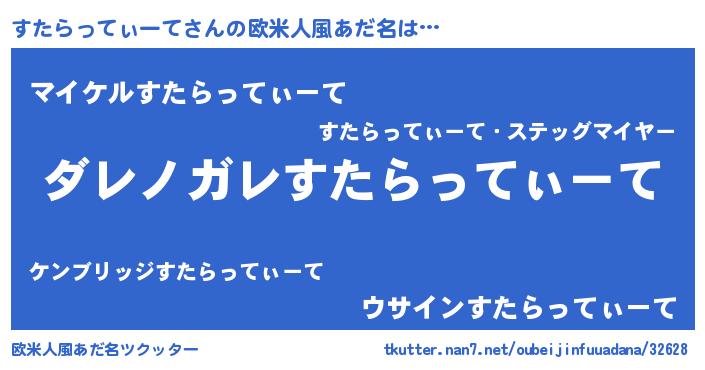 | 意味不明あだ名 | 『住所不定無職すたらってぃーて(84歳)』 |