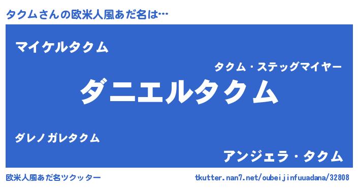 | 男性向けラノベタイトル風あだ名 | 『おまえをオタクにしてやるから、俺をタクムにしてくれ! 』 |
