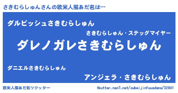 | 男性向けラノベタイトル風あだ名 | 『魔弾の王とさきむらしゅん』 |