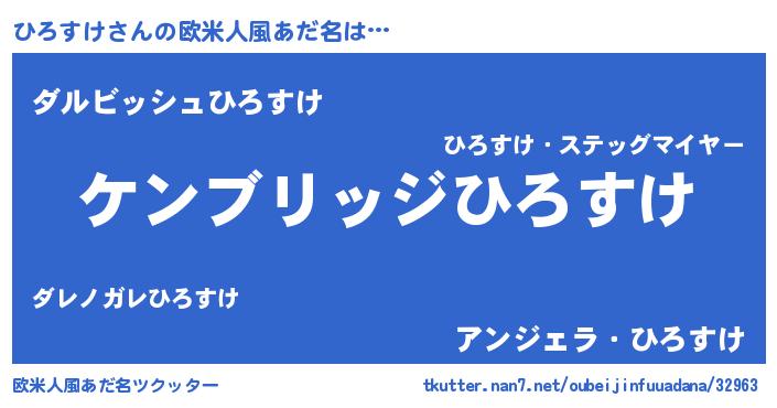 | 男性向けラノベタイトル風あだ名 | 『Re:ひろすけから始める異世界生活』 |
