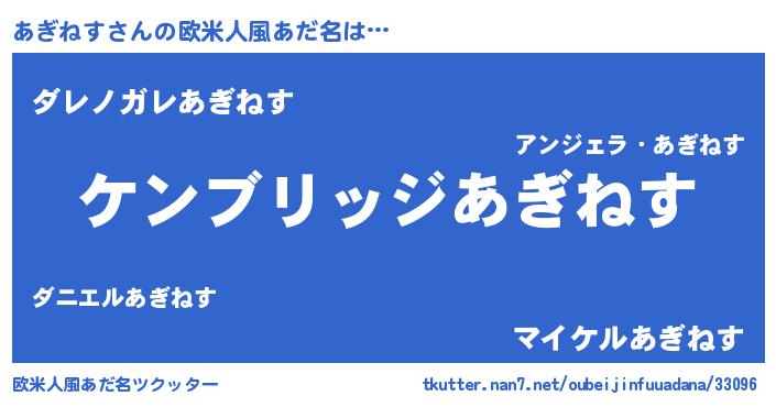 | 男性向けラノベタイトル風あだ名 | 『Re:あぎねすから始める異世界生活』 |