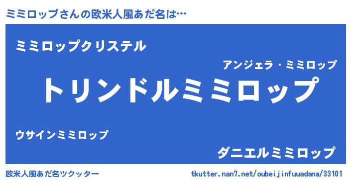 | 男性向けラノベタイトル風あだ名 | 『ミミロップ~年齢イコール彼女いない歴の魔法使い~』 |