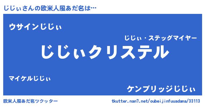 | 女子向けラノベタイトル風あだ名 | 『じじぃの雑貨屋さん』『闇のじじぃ』 |