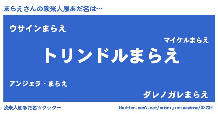 | 男性向けラノベタイトル風あだ名 | 『転生したらまらえだった件』 |
