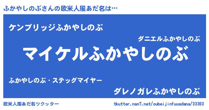 | 男性向けラノベタイトル風あだ名 | 『ふかやしのぶの憂鬱』 |