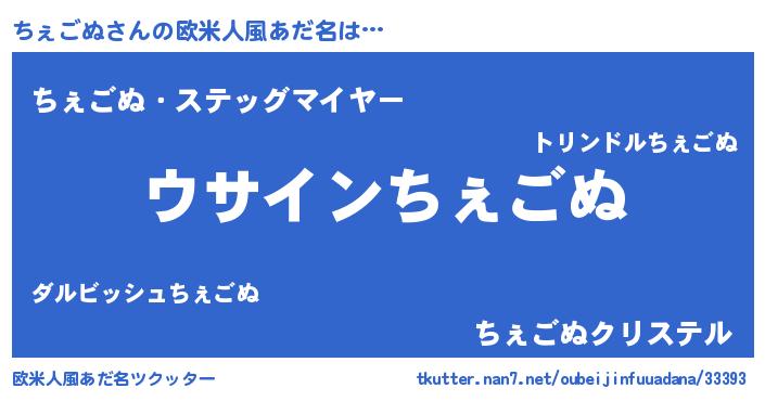 | 男性向けラノベタイトル風あだ名 | 『ダンジョンにちぇごぬを求めるのは間違っているだろうか』 |