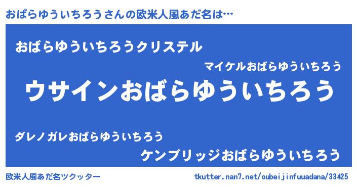 | 胡散臭い通販商品みたいなあだ名 | 『信頼と実績のサプリメント…その名も「おばらゆういちろう」』 |