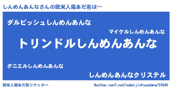 | 男性向けラノベタイトル風あだ名 | 『シンメンアンナスレイヤー』 |