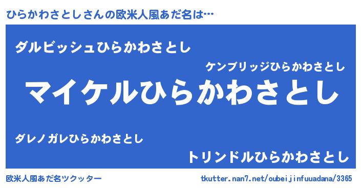 | 男性向けラノベタイトル風あだ名 | 『ひらかわさとしの憂鬱』 |