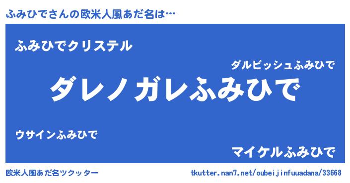 | 男性向けラノベタイトル風あだ名 | 『この素晴らしい世界にふみひでを!』 |