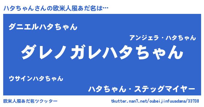 | 男性向けラノベタイトル風あだ名 | 『この素晴らしい世界にハタちゃんを!』 |