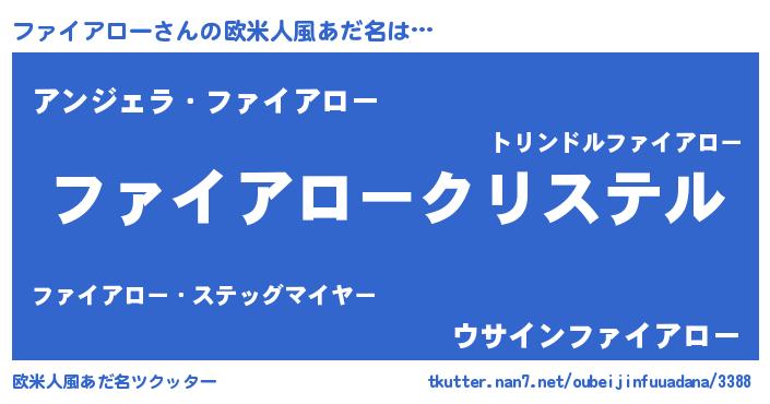 | 女子向けラノベタイトル風あだ名 | 『ファイアローの雑貨屋さん』 |