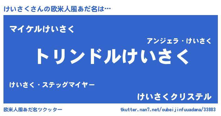 | 男性向けラノベタイトル風あだ名 | 『けいさく~年齢イコール彼女いない歴の魔法使い~』 |
