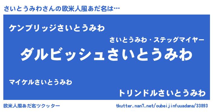 | 女子向けラノベタイトル風あだ名 | 『異世界で失敗しない100のさいとうみわ』 |