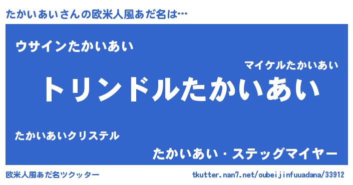 | ポケモン風あだ名 | 『タカキング』『ヒタカイアイ』 |