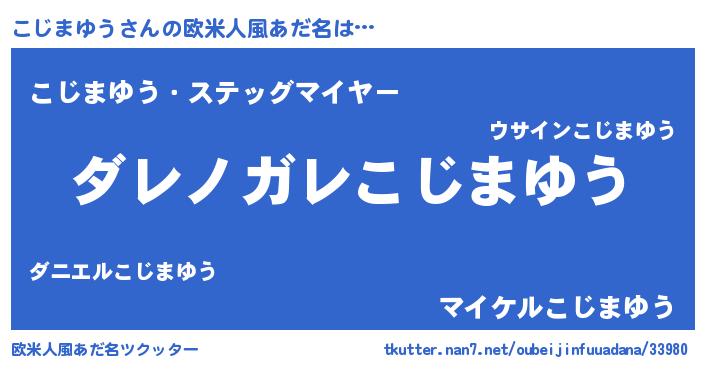 | 男性向けラノベタイトル風あだ名 | 『この素晴らしい世界にこじまゆうを!』 |
