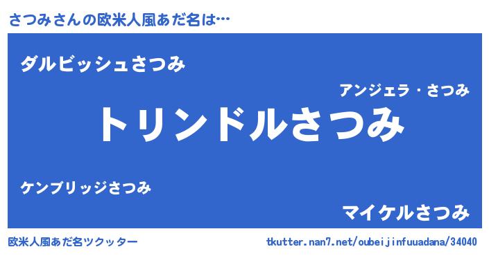 | 男性向けラノベタイトル風あだ名 | 『さつみ~年齢イコール彼女いない歴の魔法使い~』 |