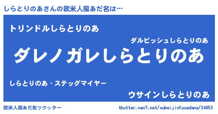 | 男性向けラノベタイトル風あだ名 | 『この素晴らしい世界にしらとりのあを!』 |