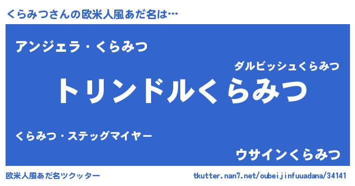 | 男性向けラノベタイトル風あだ名 | 『くらみつ~年齢イコール彼女いない歴の魔法使い~』 |