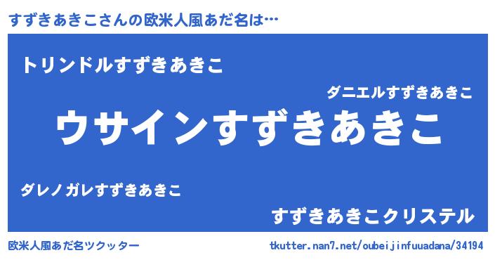 | 男性向けラノベタイトル風あだ名 | 『すずきあきこの嫁は女の子じゃないと思った?』 |
