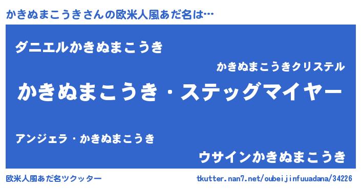 | 男性向けラノベタイトル風あだ名 | 『冴えないかきぬまこうきの育てかた』 |