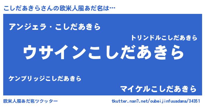 | 男性向けラノベタイトル風あだ名 | 『こしだあきらの嫁は女の子じゃないと思った?』 |