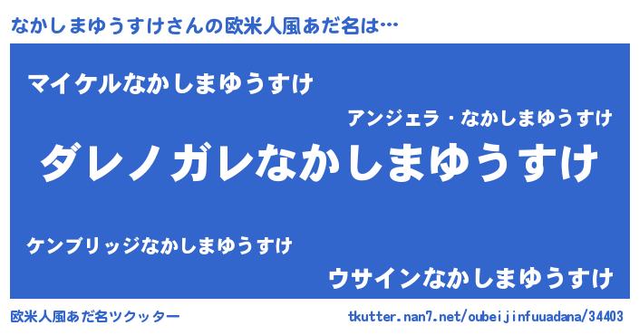 | 意味不明あだ名 | 『住所不定無職なかしまゆうすけ(53歳)』 |