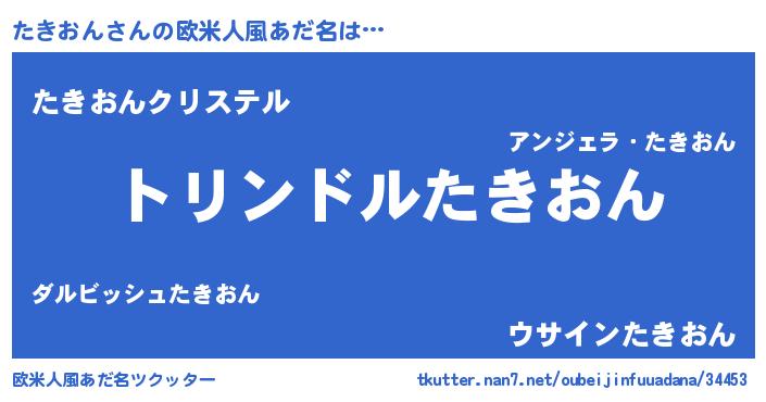 | 男性向けラノベタイトル風あだ名 | 『たきおん~年齢イコール彼女いない歴の魔法使い~』 |