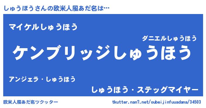 | 男性向けラノベタイトル風あだ名 | 『Re:しゅうほうから始める異世界生活』 |