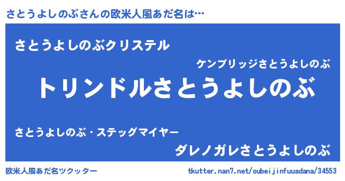 | 男性向けラノベタイトル風あだ名 | 『サトウヨシノブスレイヤー』 |