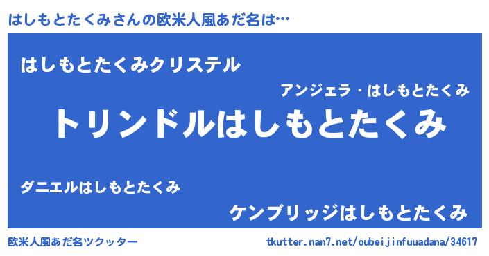 | 男性向けラノベタイトル風あだ名 | 『転生したらはしもとたくみだった件』 |