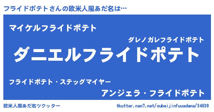 | 男性向けラノベタイトル風あだ名 | 『おまえをオタクにしてやるから、俺をフライドポテトにしてくれ! 』 |