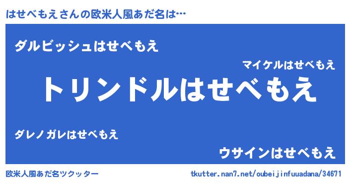 | ヘコむあだ名 | 『はせべもえ(苦笑)』『はせ太郎』 |