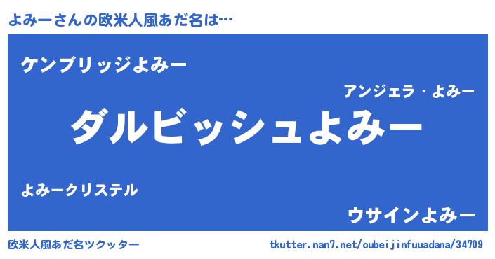 | 男性向けラノベタイトル風あだ名 | 『よみーという概念が存在しない退屈な世界 』 |