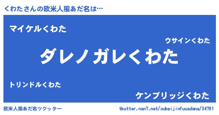 | 意味不明あだ名 | 『住所不定無職くわた(81歳)』『自称くわた』 |