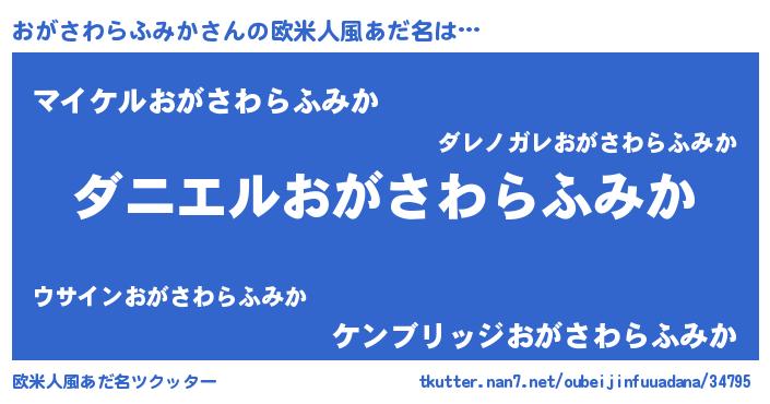 | 意味不明あだ名 | 『眠気覚ましガムおがさわらふみか味』 |
