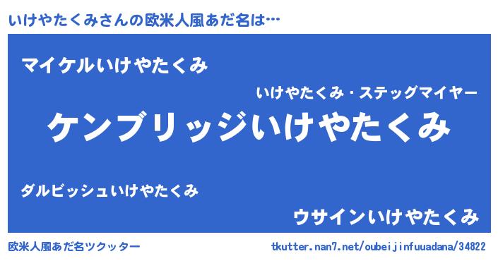| 意味不明あだ名 | 『自称いけやたくみ』 |