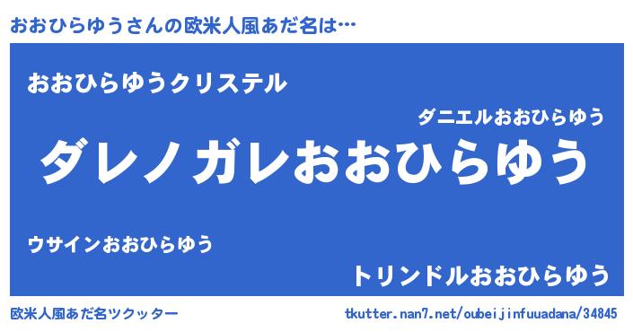 | 男性向けラノベタイトル風あだ名 | 『この素晴らしい世界におおひらゆうを!』 |