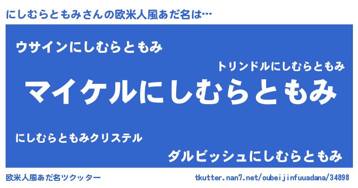 | ポケモン風あだ名 | 『ニシチュウ』『ヒニシムラトモミ』 |