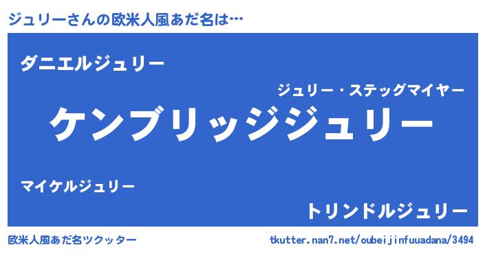 | 女子向けラノベタイトル風あだ名 | 『ジュリーなんてお断りですっ。』 |