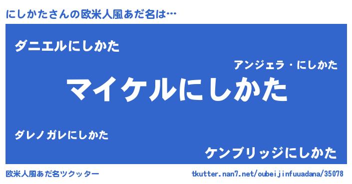 | 男性向けラノベタイトル風あだ名 | 『にしかたの憂鬱』 |